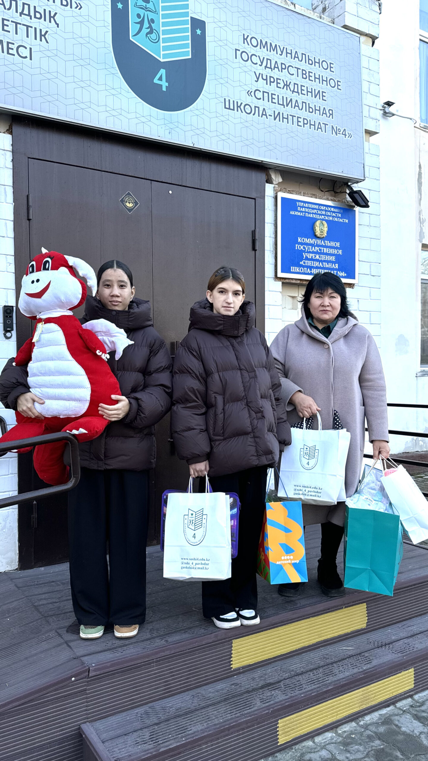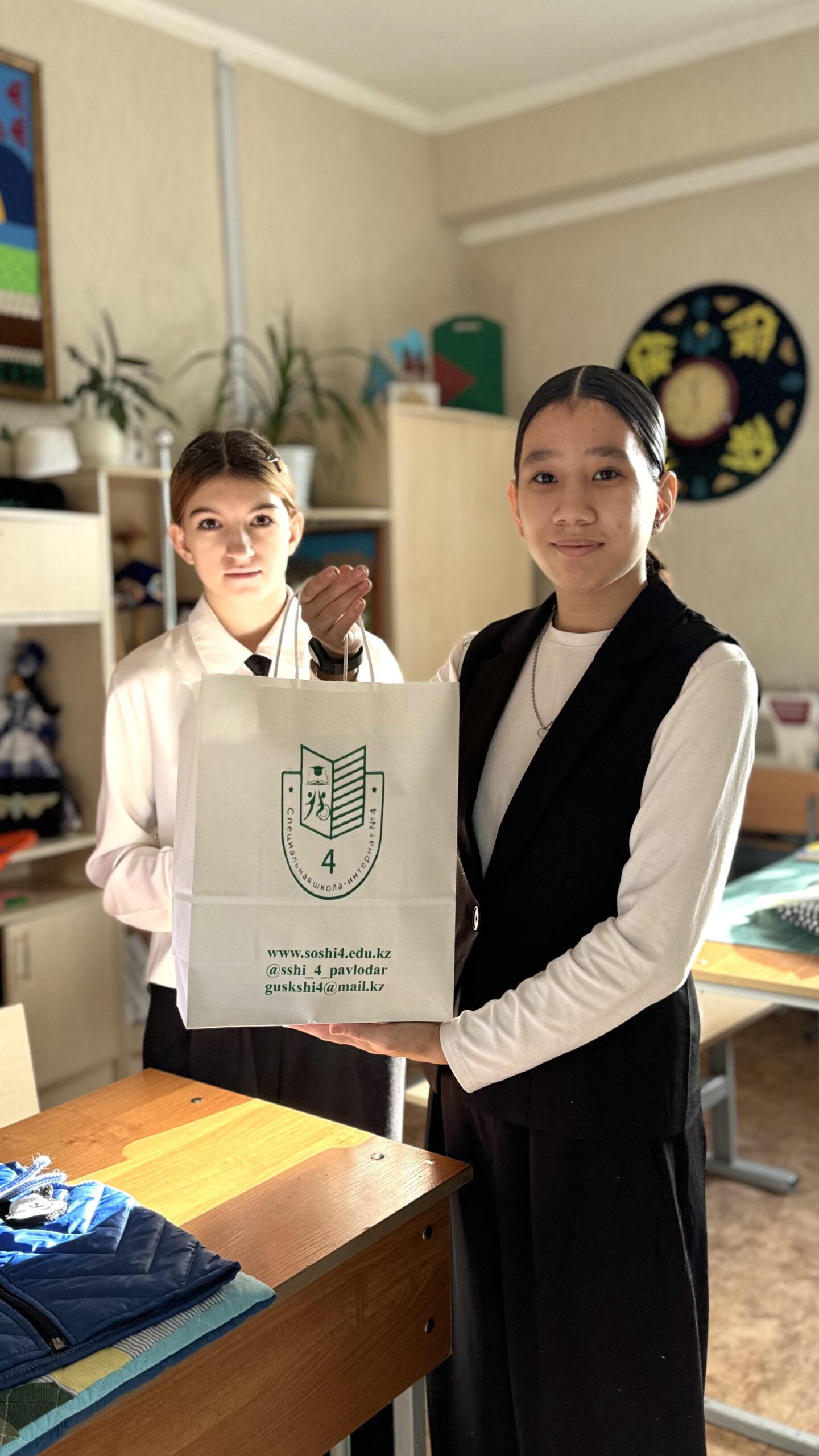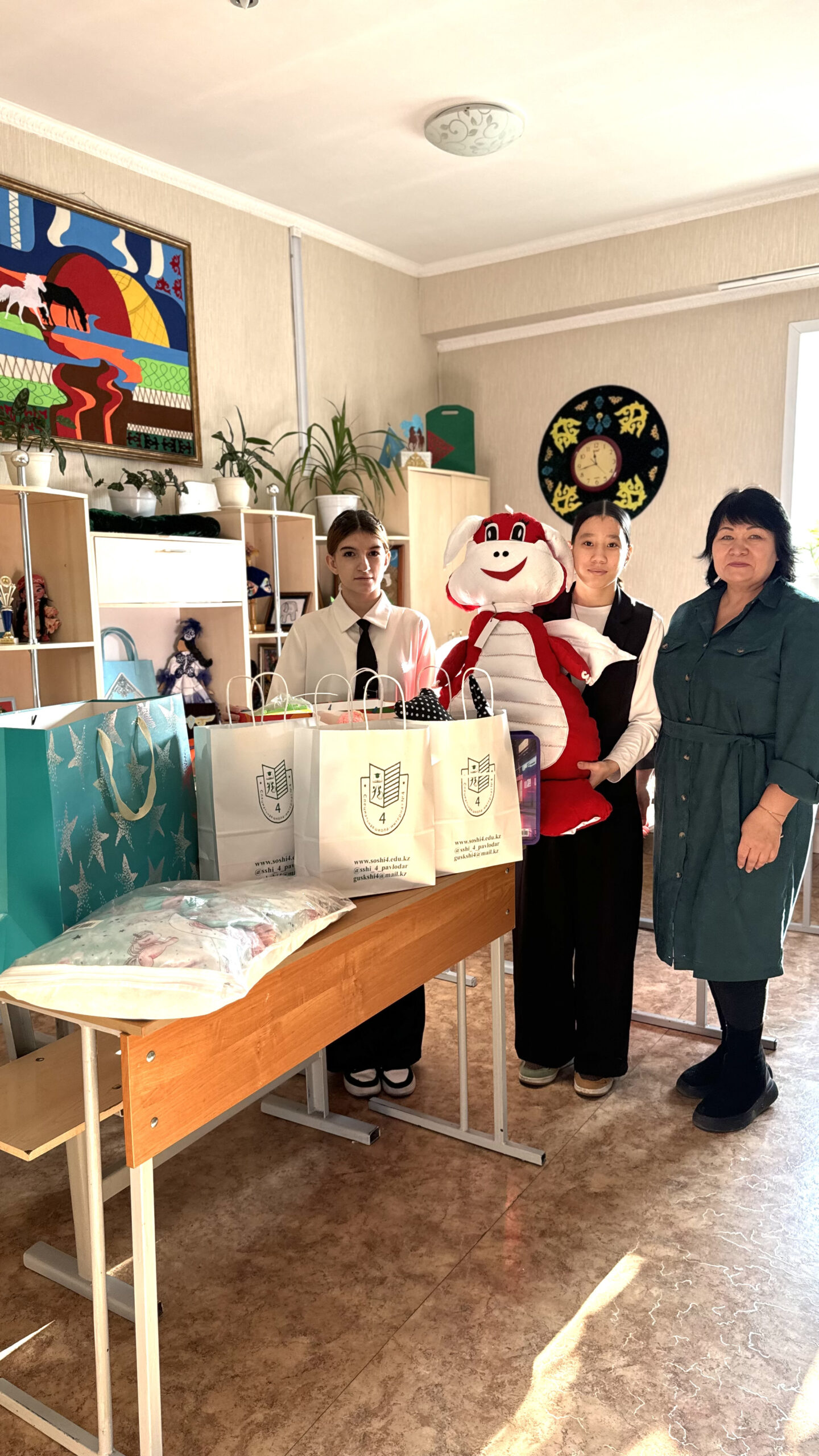 Оқушылар Павлодар облысының мамандандырылған балалар үйі үшін ойыншықтар, жұмсақ бұйымдар, кішкентай киімдер мен сувенирлерді өз қолдарымен жасап берді. Әр зат – кішкентай жақсылық хаты, оған балалар өздерінің шынайы сезімдерін: қолдау, қамқорлық және қуаныш сыйлау ниетін салды.