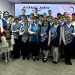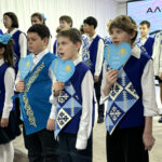 Со сцены прозвучали песни «Рахмет» и «Казахстан», а школьный хор «Атамекен» вместе с педагогом исполнил трогательную песню «Алғыс».