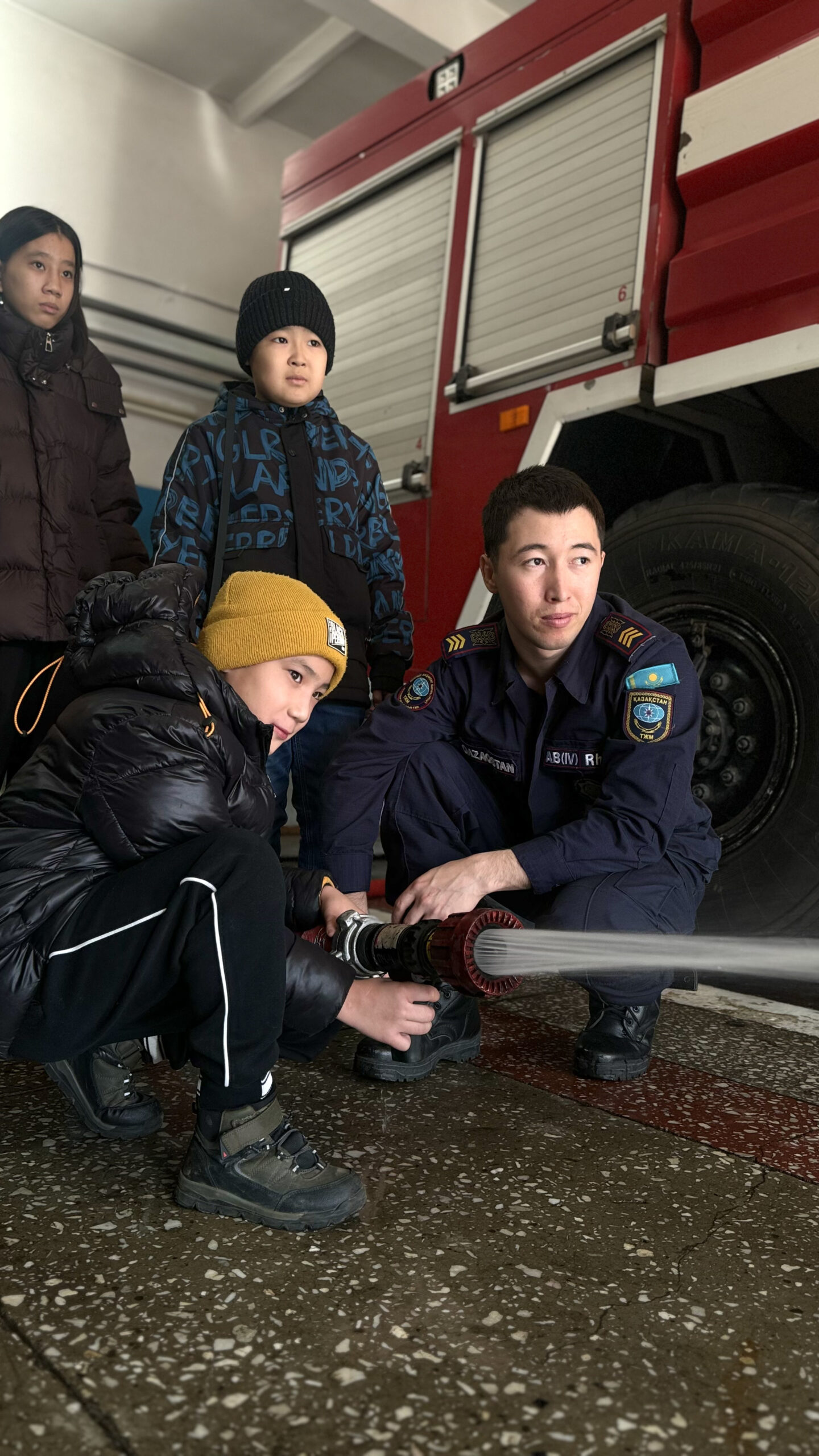 Оқушылар өрт сөндірушілердің жұмысымен танысып, арнайы техника мен құрал-жабдықтарды көрді, жауынгерлік киімді киіп көрді және қауіпсіздік ережелерін сақтаудың маңыздылығын ұғынды.